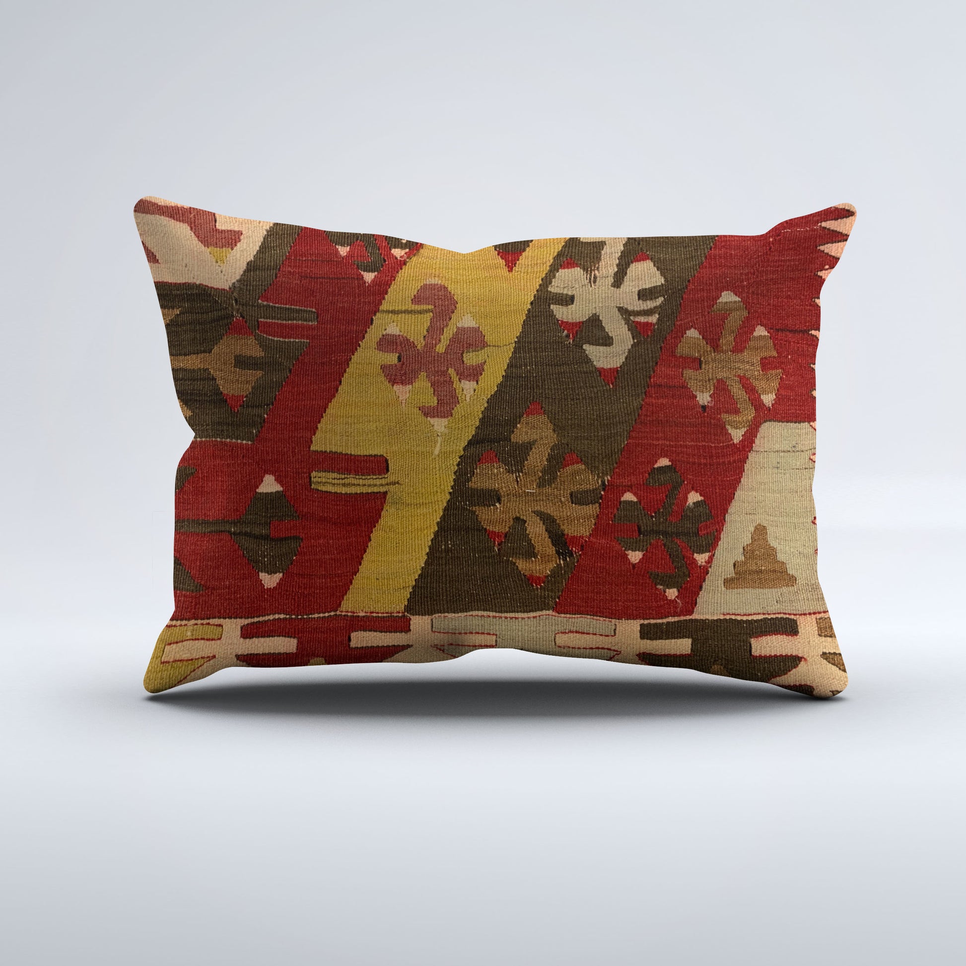 Vintage Turkish Kilim Cushion Cover 60x40 cm Square Wool Kelim Pillowcase 64734