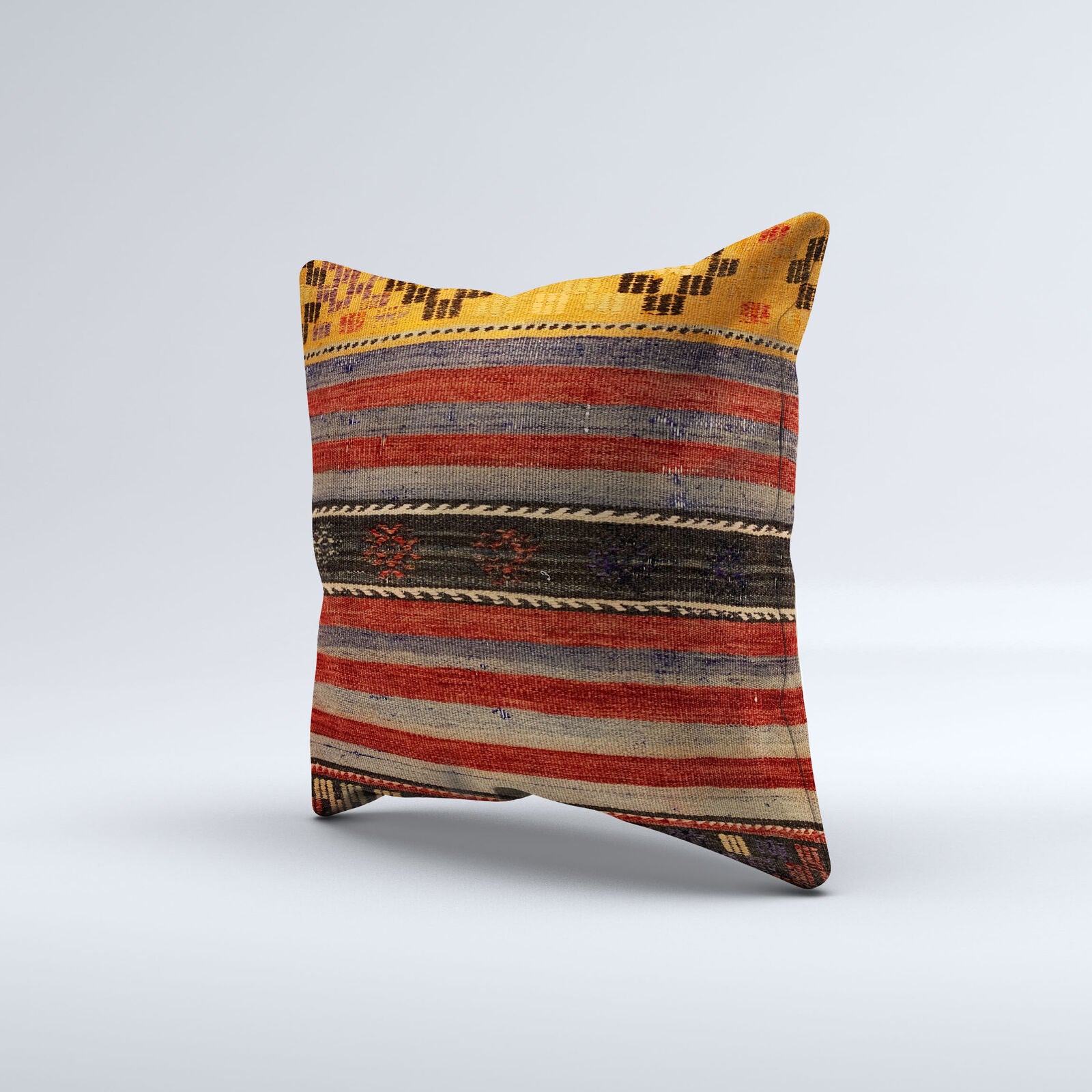 Vintage Turkish Kilim Cushion Cover 60x60 cm Square Wool Kelim Pillowcase 66413