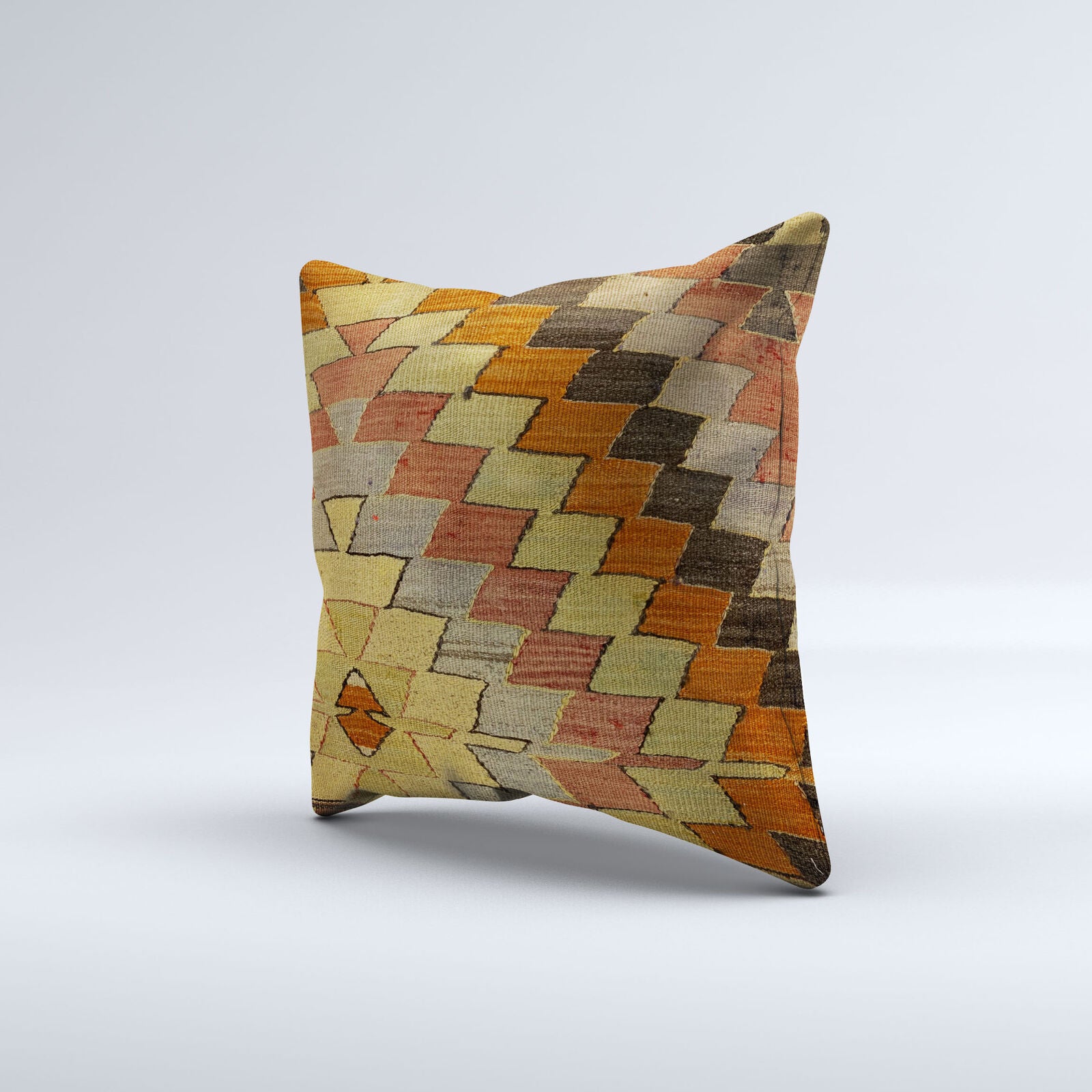 Vintage Turkish Kilim Cushion Cover 60x60 cm Square Wool Kelim Pillowcase 66417