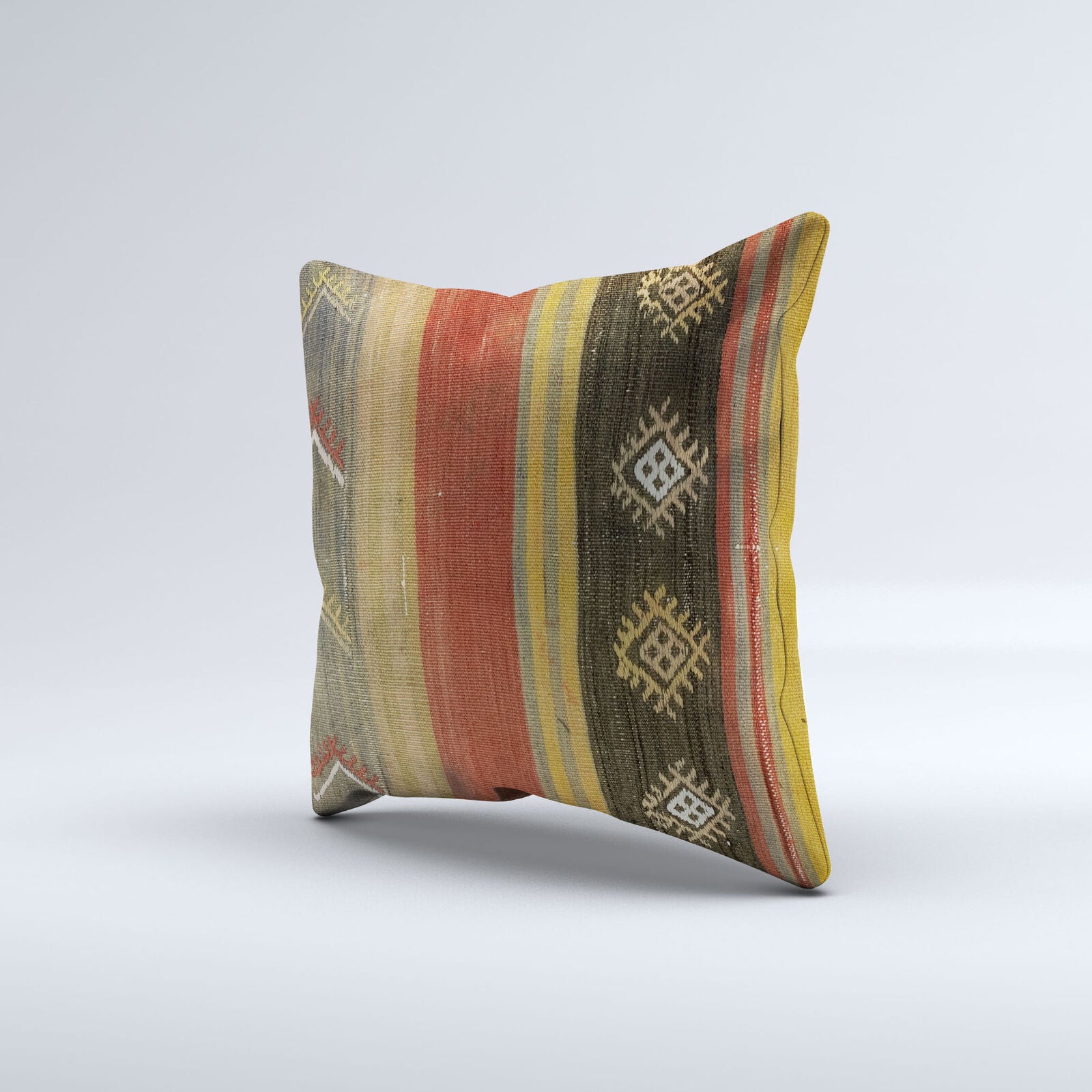 Vintage Turkish Kilim Cushion Cover 60x60 cm Square Wool Kelim Pillowcase 66461