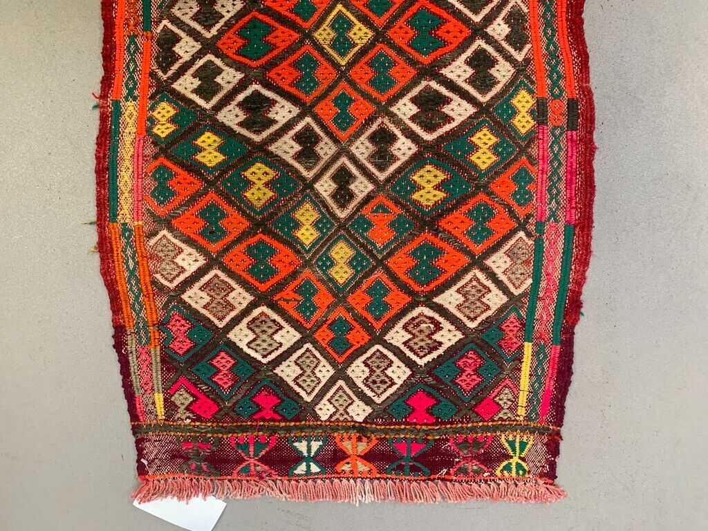 Vintage Turkish Mini Kilim 101x49 cm Wool Small Kelim Runner, shabby Chic