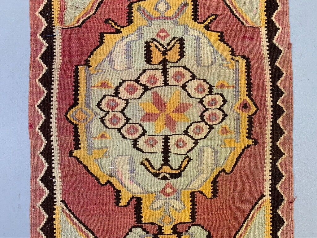 Vintage Turkish Mini Kilim 102x55 cm Wool Small Kelim Runner, shabby Chic