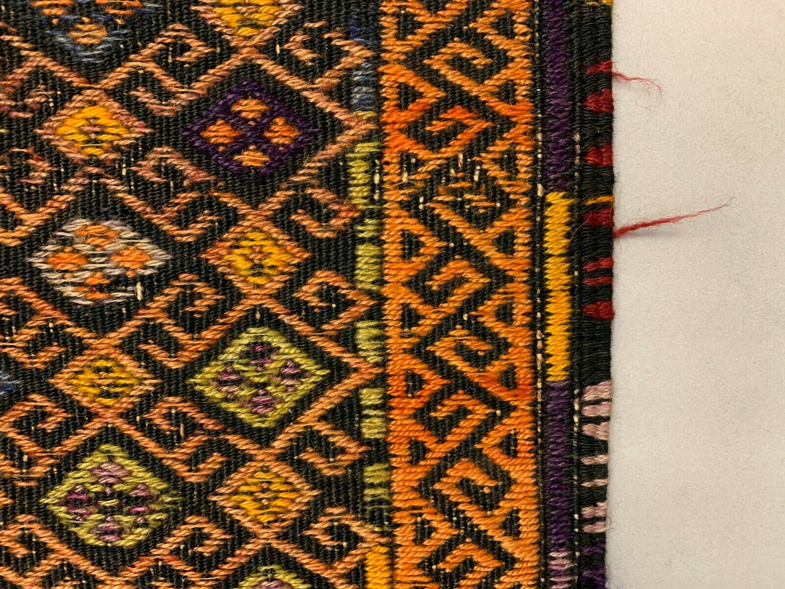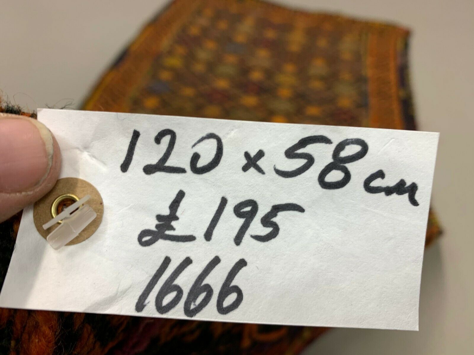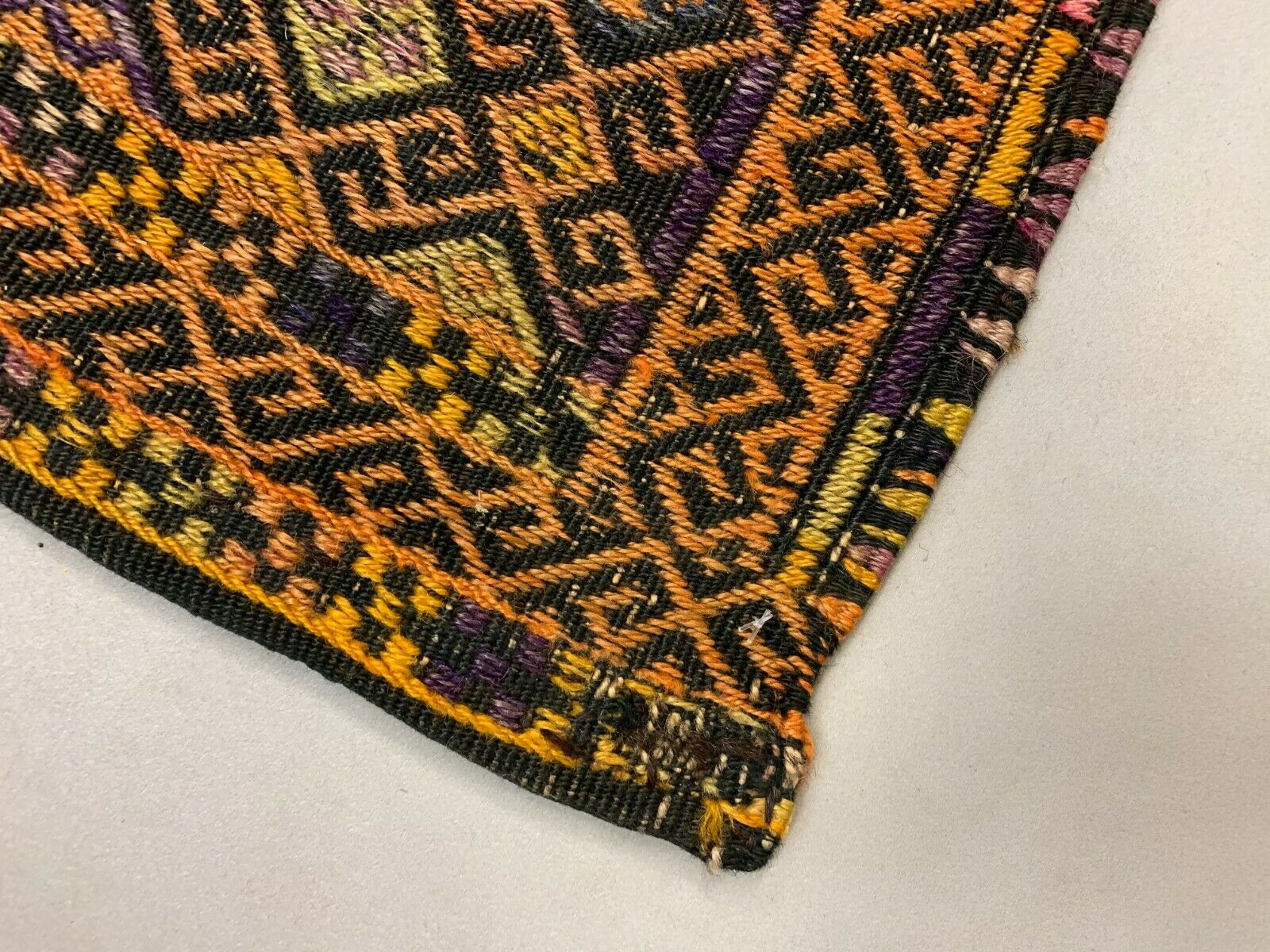 Vintage Turkish Mini Kilim 120x58 cm Shabby Wool Small Kelim Rug, Red Black Gold