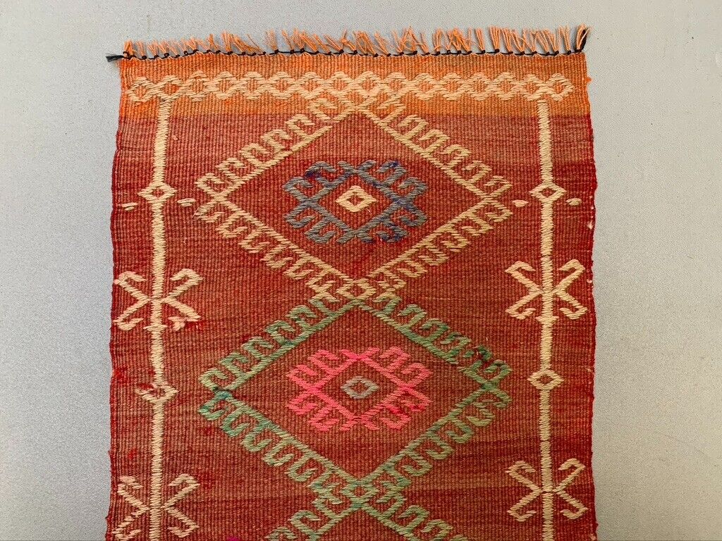 Vintage Turkish Mini Kilim 83x41 cm Wool Small Kelim Runner, shabby Chic