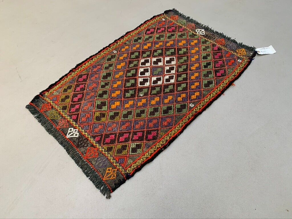 Vintage Turkish Mini Kilim 84x52 cm Wool Small Kelim Runner, shabby Chic