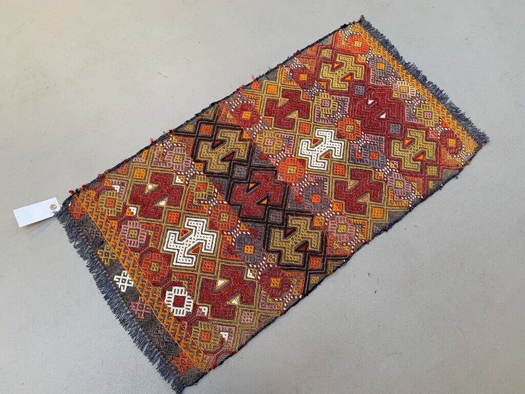 Vintage Turkish Mini Kilim 87x47 cm Wool Small Kelim Runner, shabby Chic