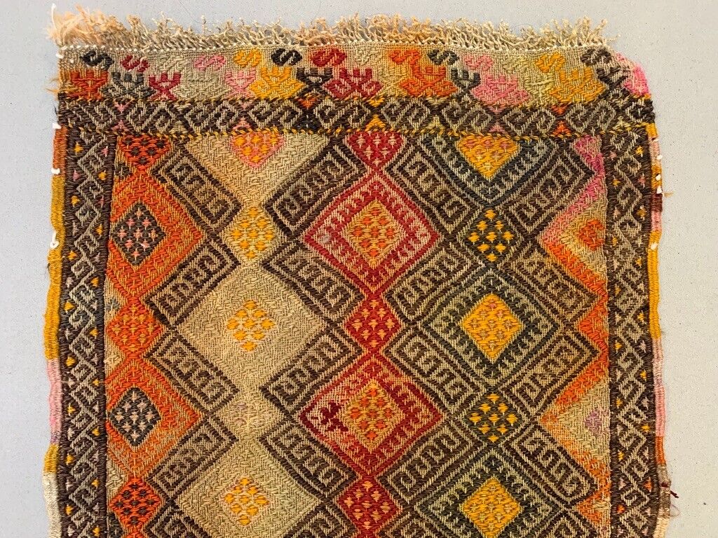 Vintage Turkish Mini Kilim 88x50 cm Wool Small Kelim Runner, shabby Chic