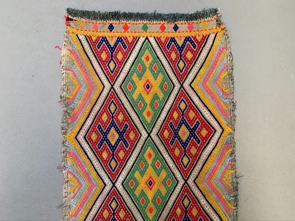 Vintage Turkish Mini Kilim 90x43 cm Wool Small Kelim Runner, shabby Chic