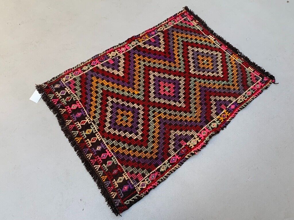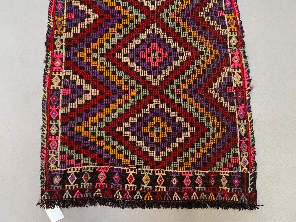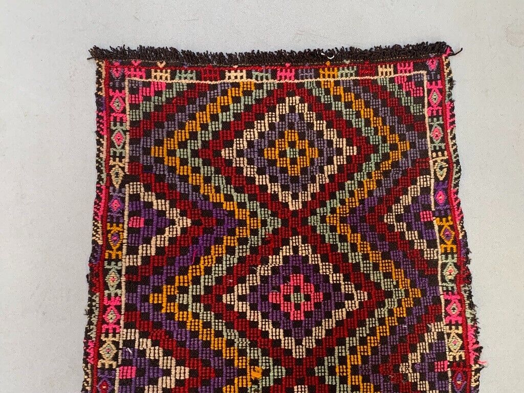 Vintage Turkish Mini Kilim 90x66 cm Wool Small Kelim Runner, shabby Chic
