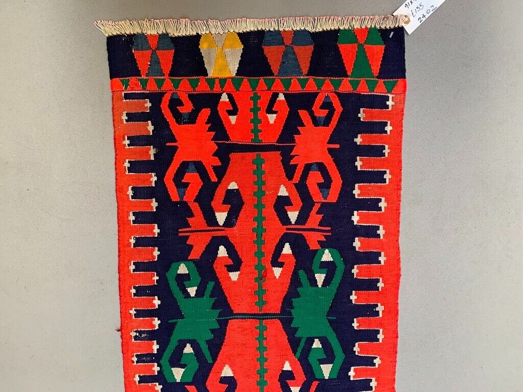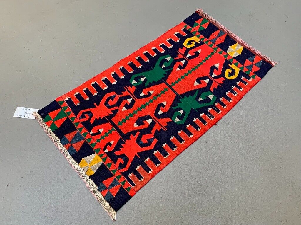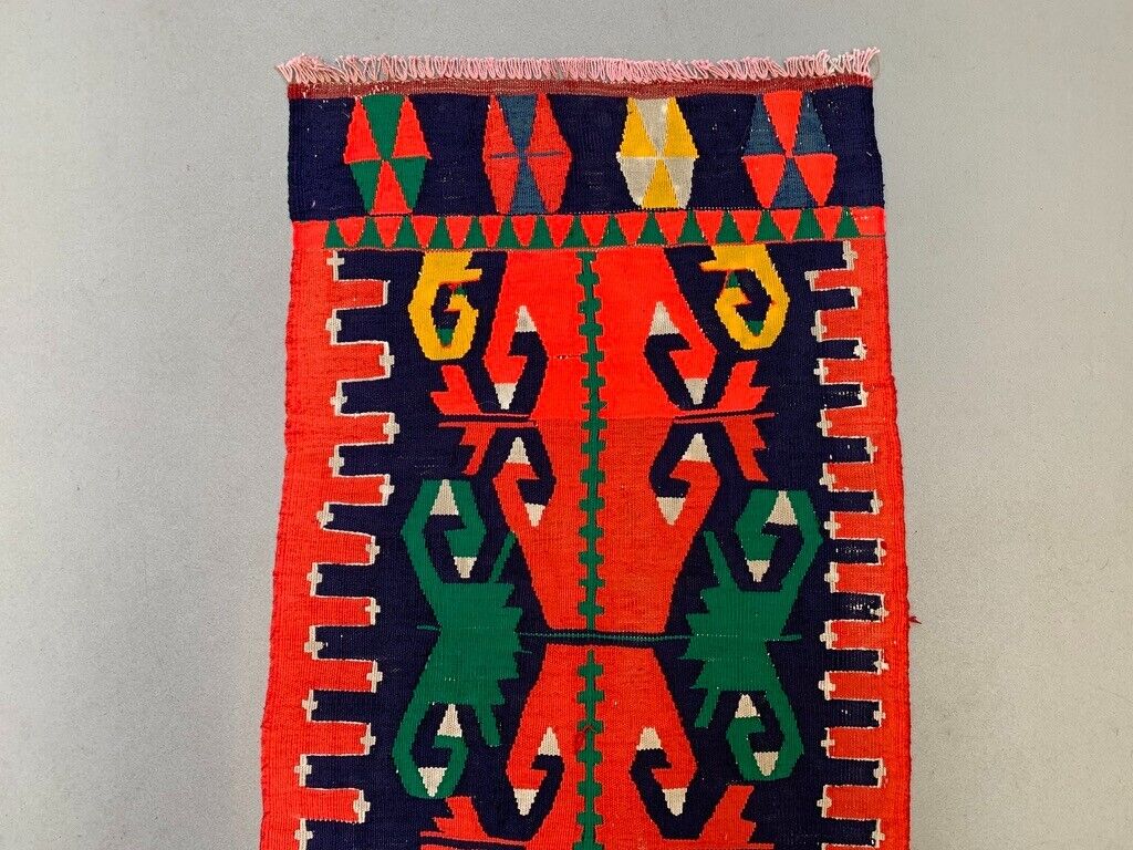Vintage Turkish Mini Kilim 91x46 cm Wool Small Kelim Runner, shabby Chic