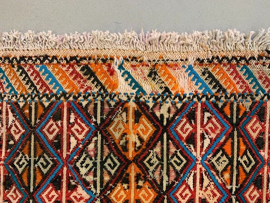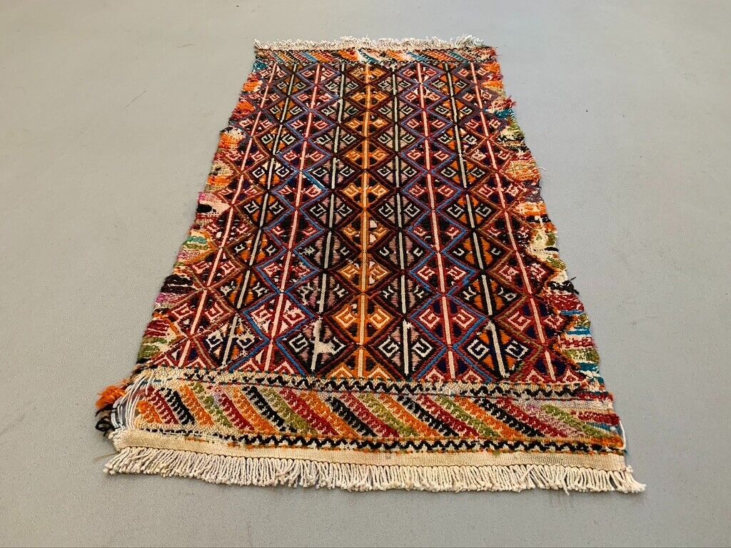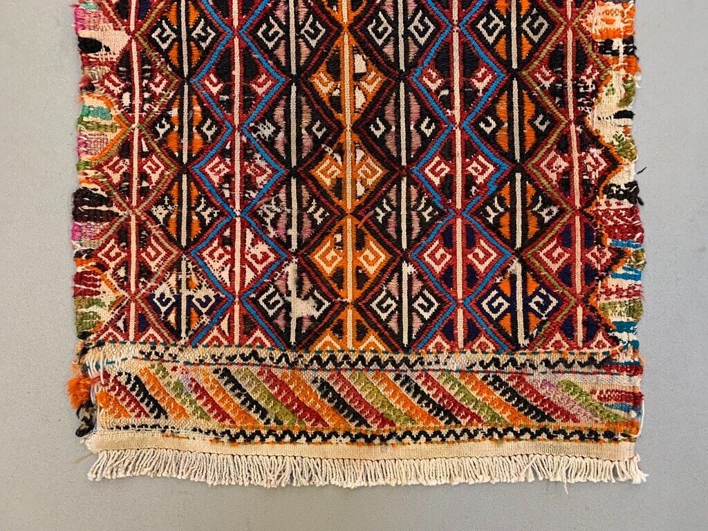 As the nature of those kilims and due to their age, old repairs, small stains and some imperfections are normal and not considered as faults.