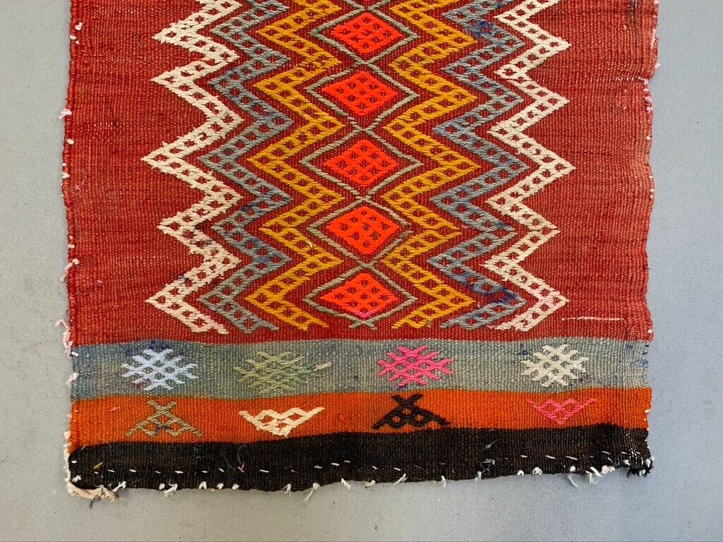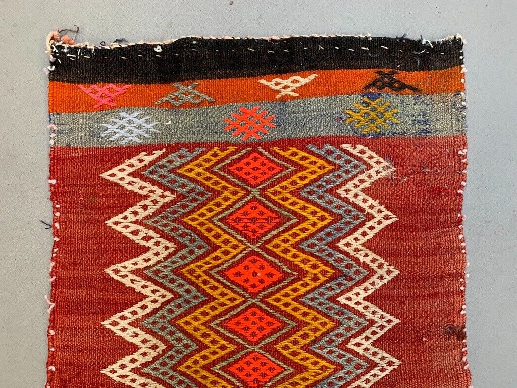 Vintage Turkish Mini Kilim 92x50 cm Wool Small Kelim Runner, shabby Chic