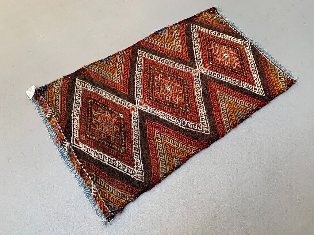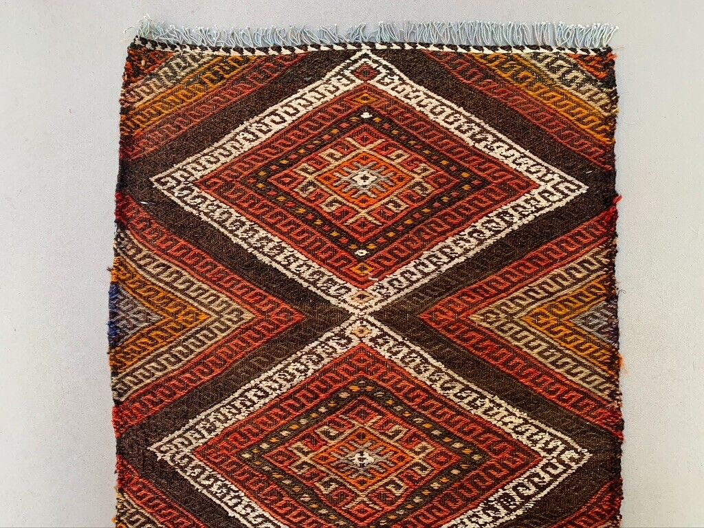 Vintage Turkish Mini Kilim 93x56 cm Wool Small Kelim Runner, shabby Chic