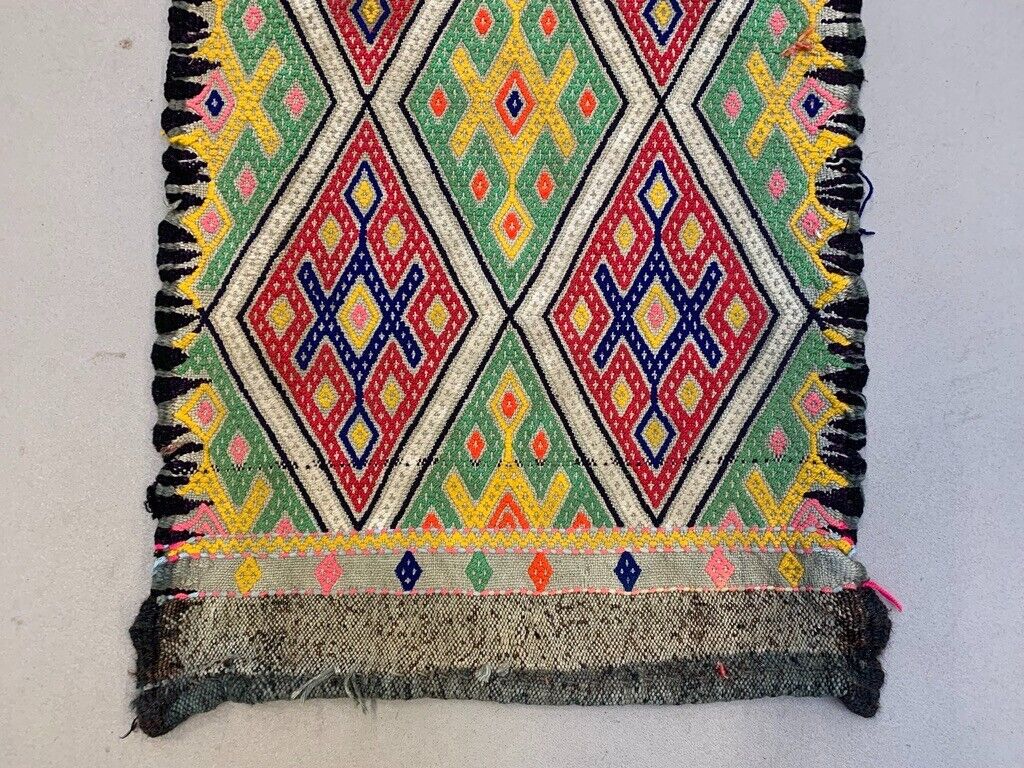 Vintage Turkish Mini Kilim 95x42 cm Wool Small Kelim Runner, shabby Chic