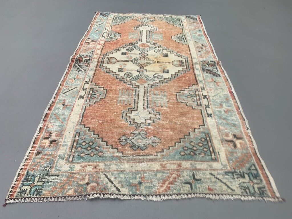 Vintage Turkish Oushak Rug 140x78 cm shabby carpet Ushak Region Medium