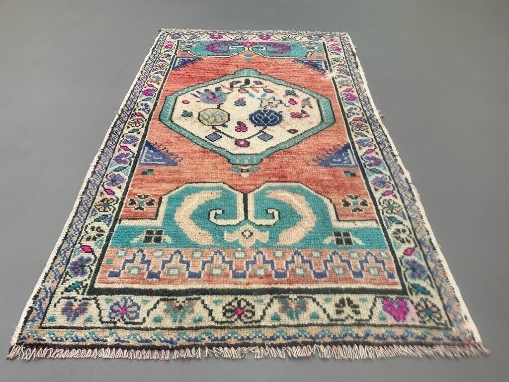 Vintage Turkish Oushak Rug 150x87 cm shabby carpet Ushak Region Medium