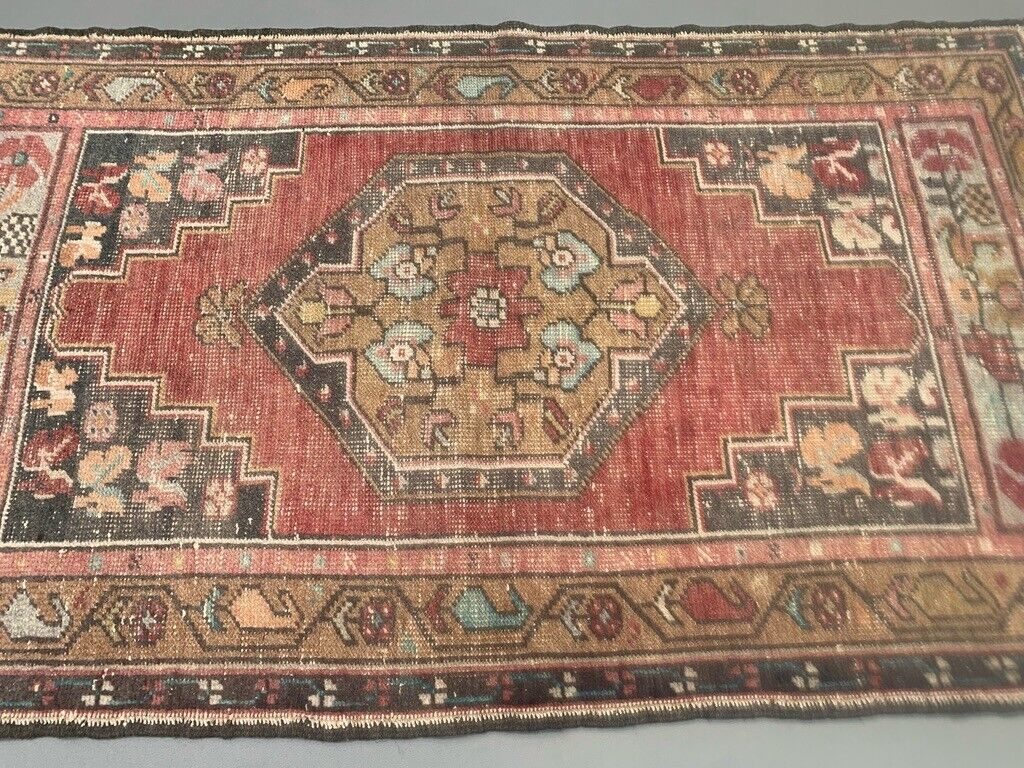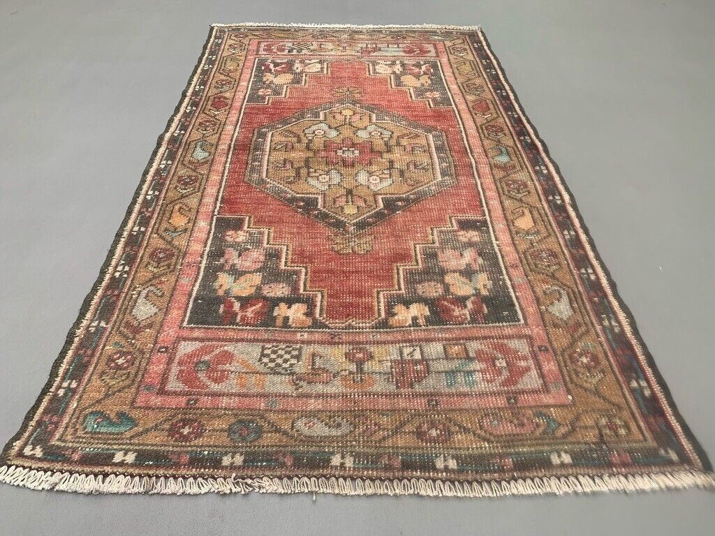 Vintage Turkish Oushak Rug 150x87 cm shabby carpet Ushak Region Medium