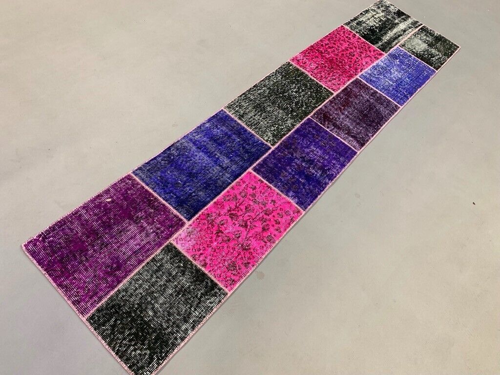 Vintage Turkish Patchwork Runner 250x60 cm Wool Rug 2176
