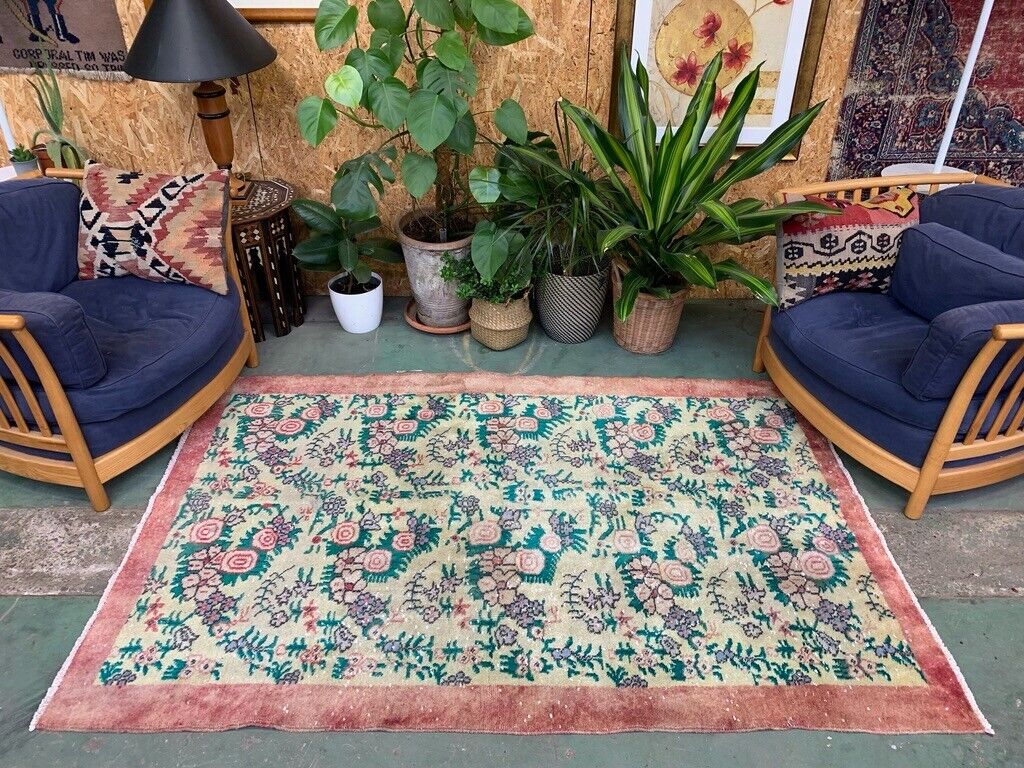 Vintage Turkish Rug 206x135 cm shabby Distressed carpet Medium