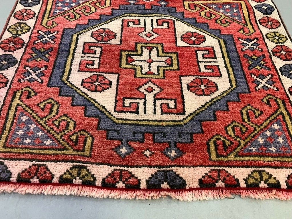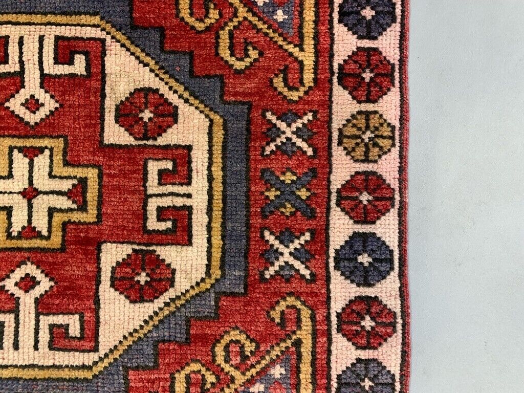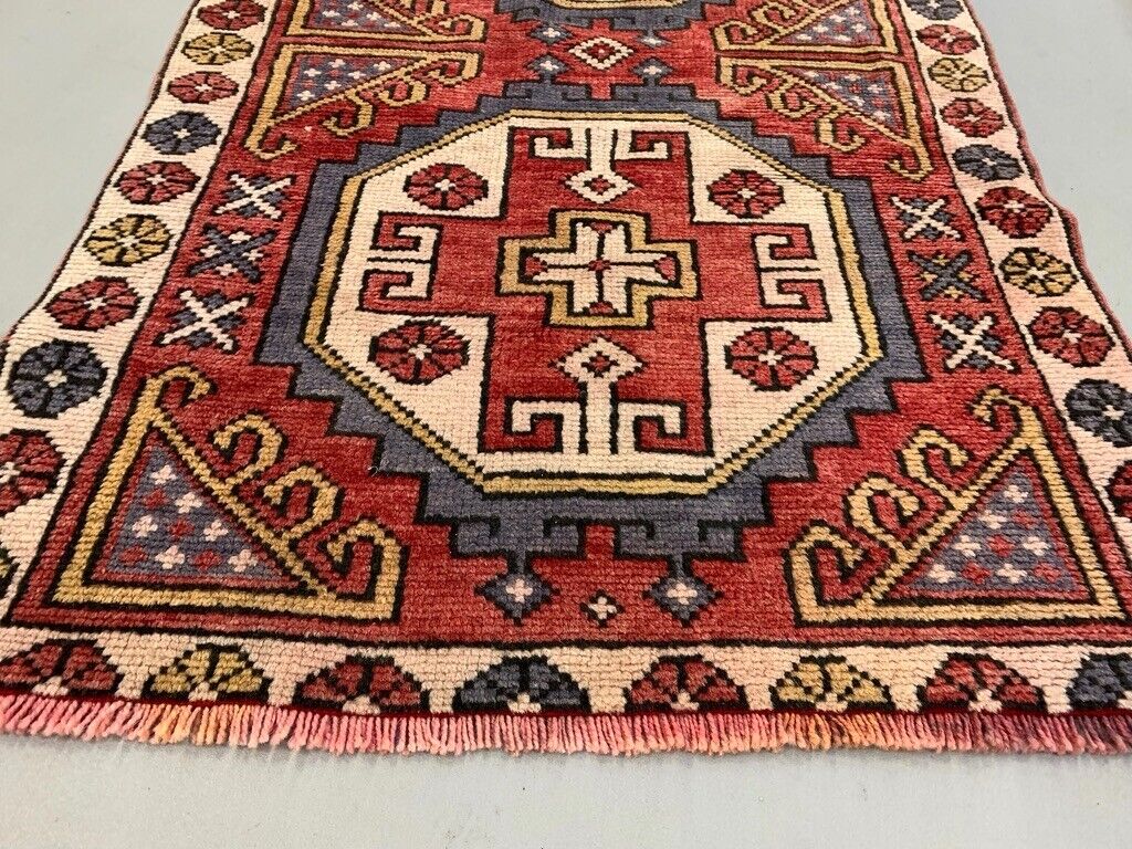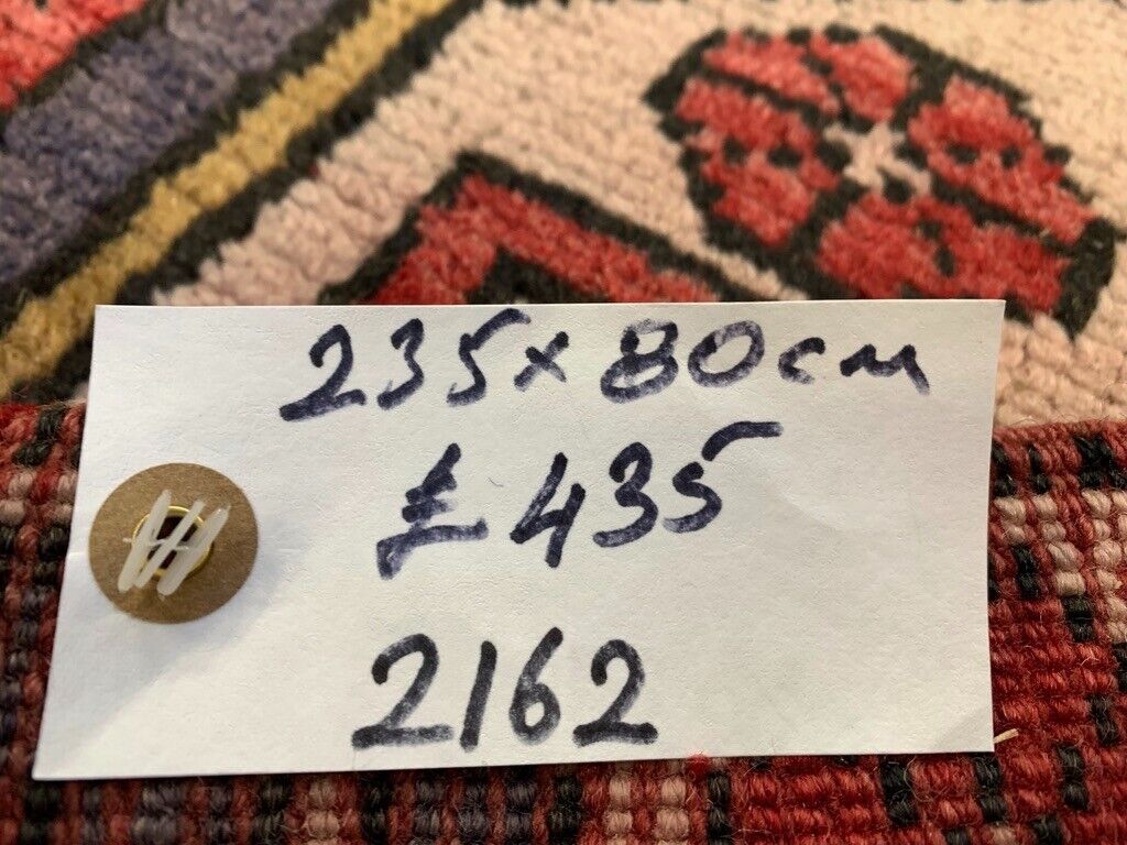 Vintage Turkish Runner 235x80 cm Kazak Rug, Terracotta Red, Beige Blue