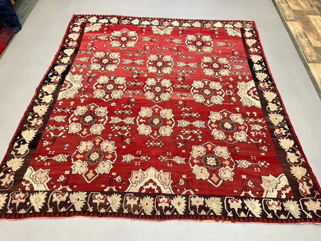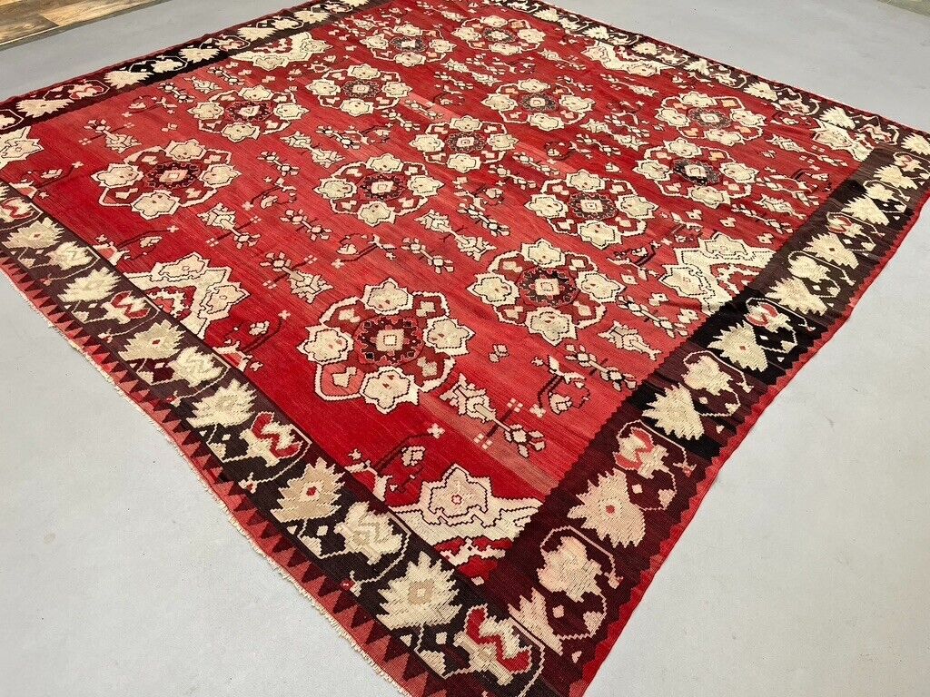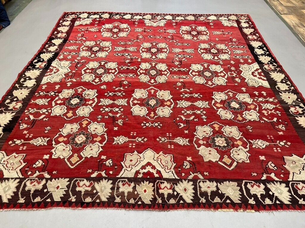 Vintage Turkish Square Kilim 301x285 cm Kelim Wool Rug Large