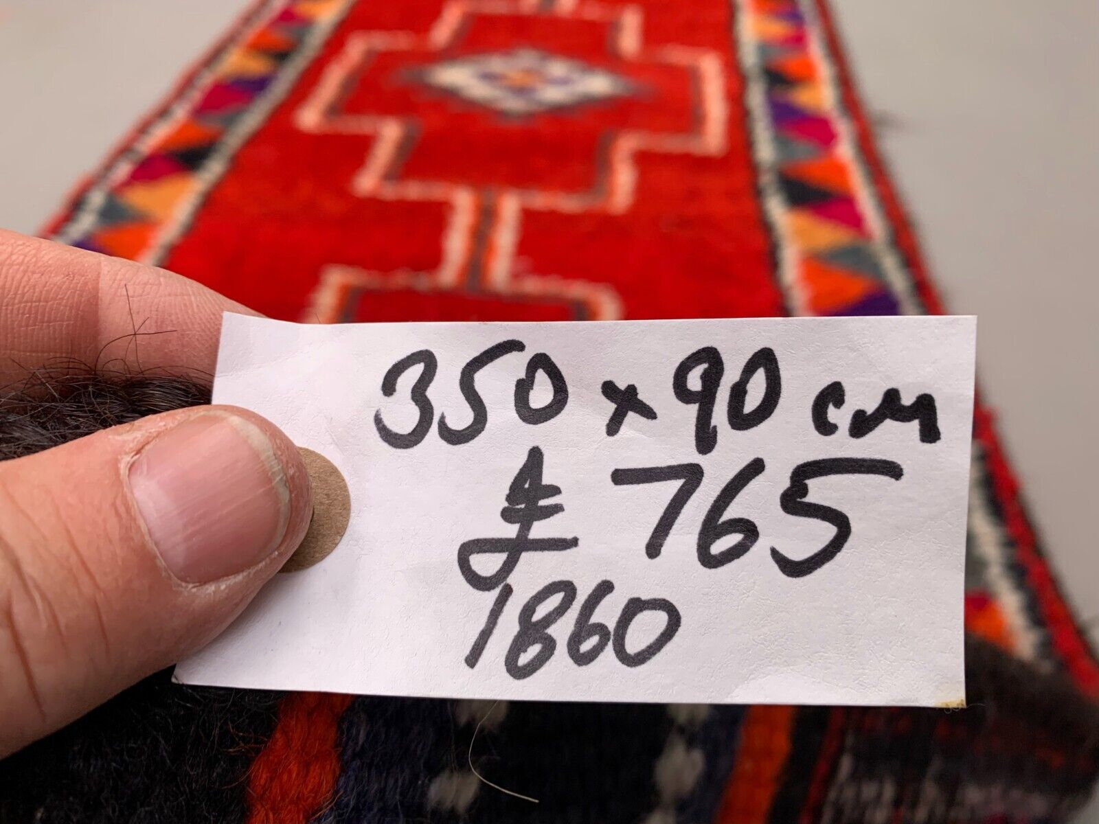 Vintage Turkish Tribal Runner 350x90 cm veg dye wool rug tribal, handmade