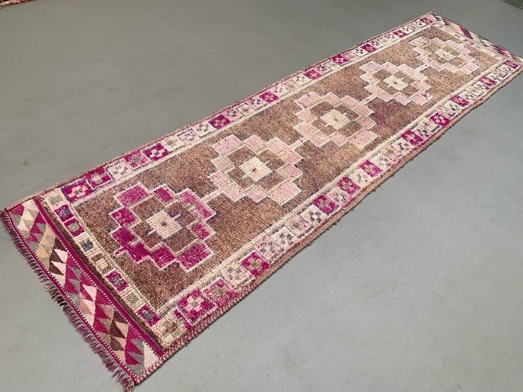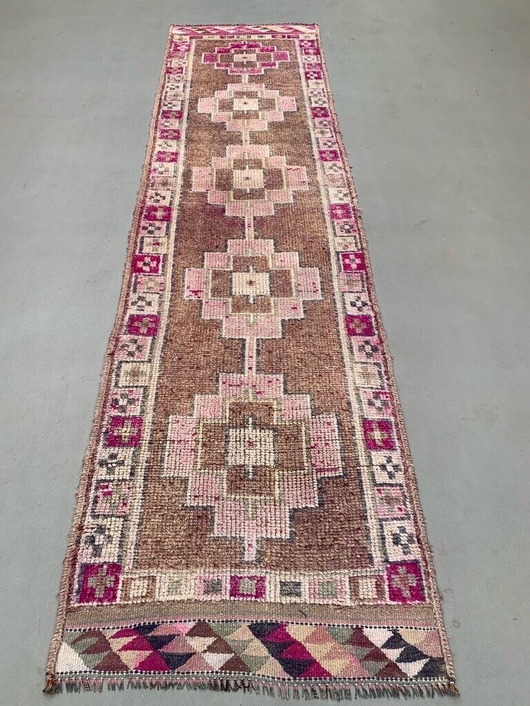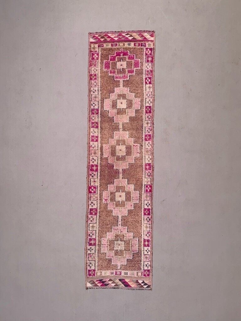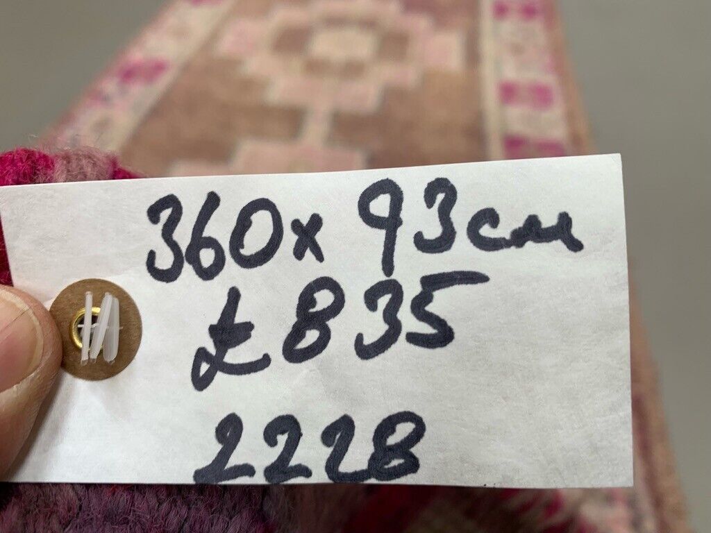 Vintage Turkish Tribal Runner 360x93 cm veg dye wool rug tribal, handmade