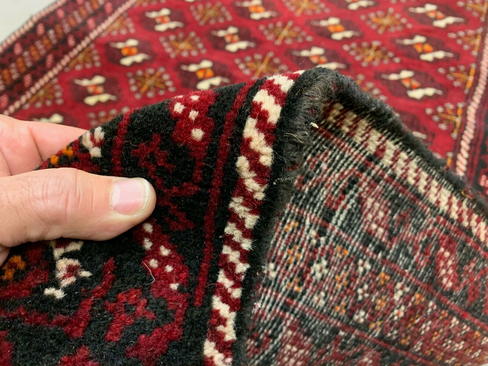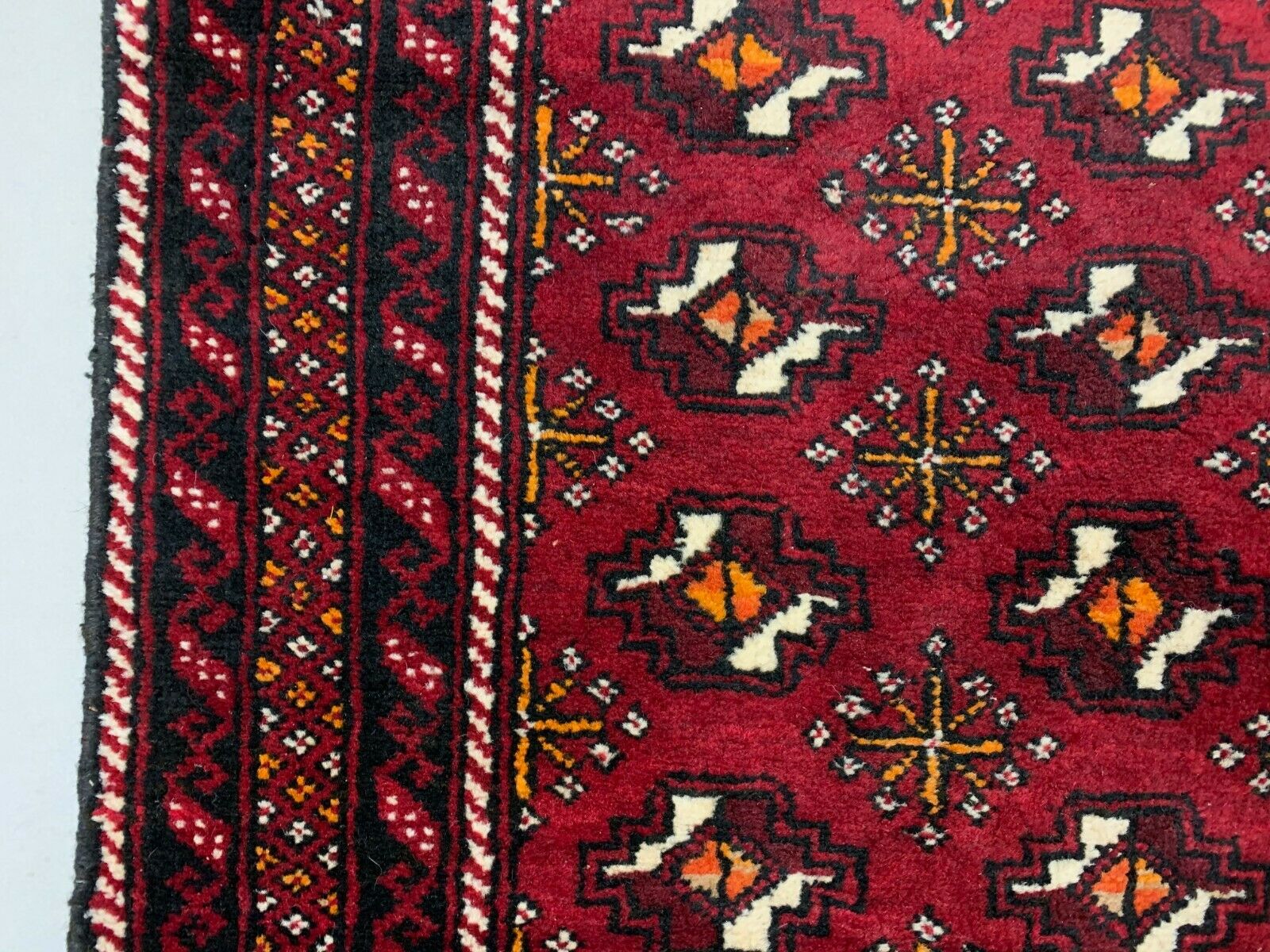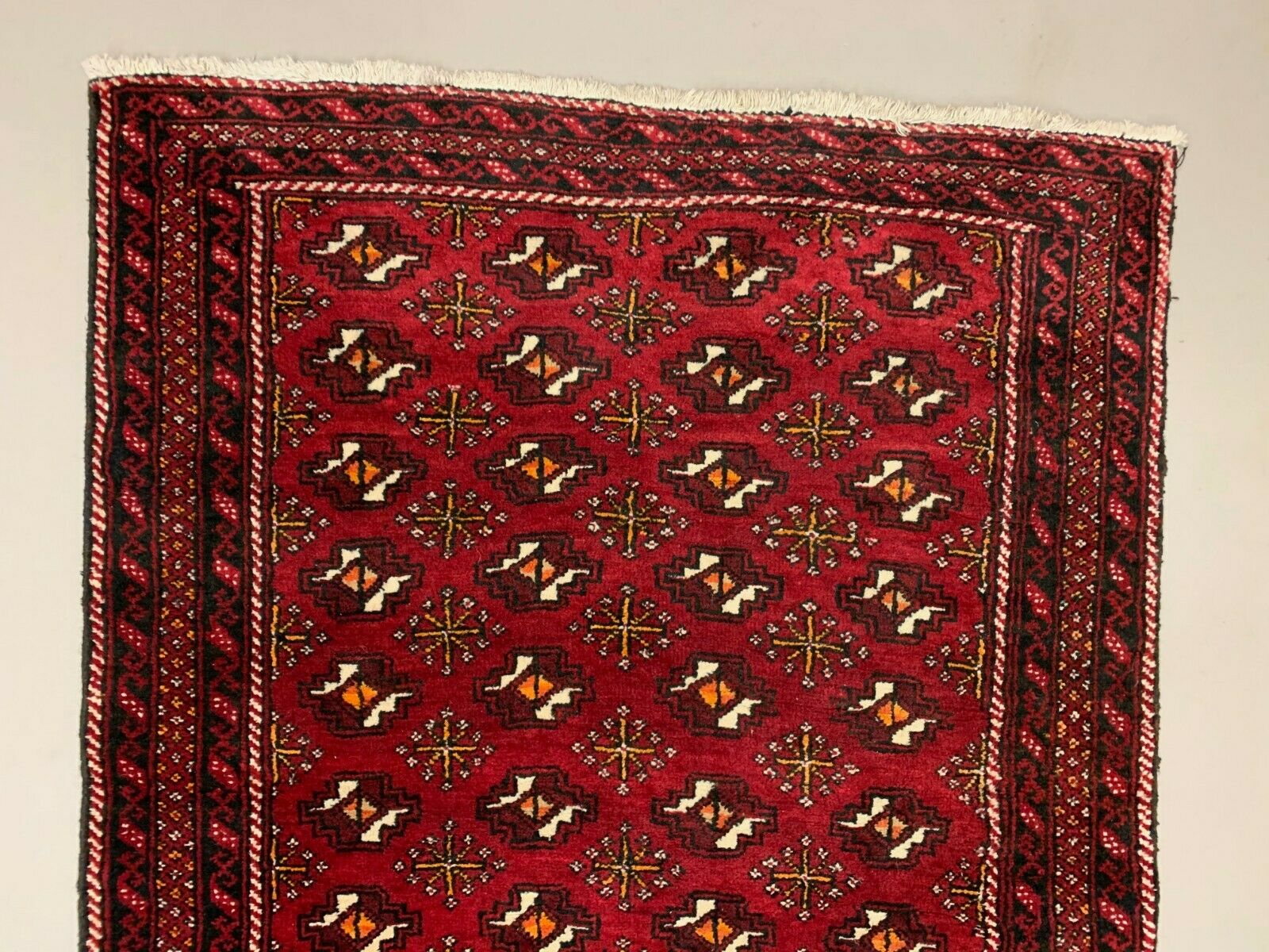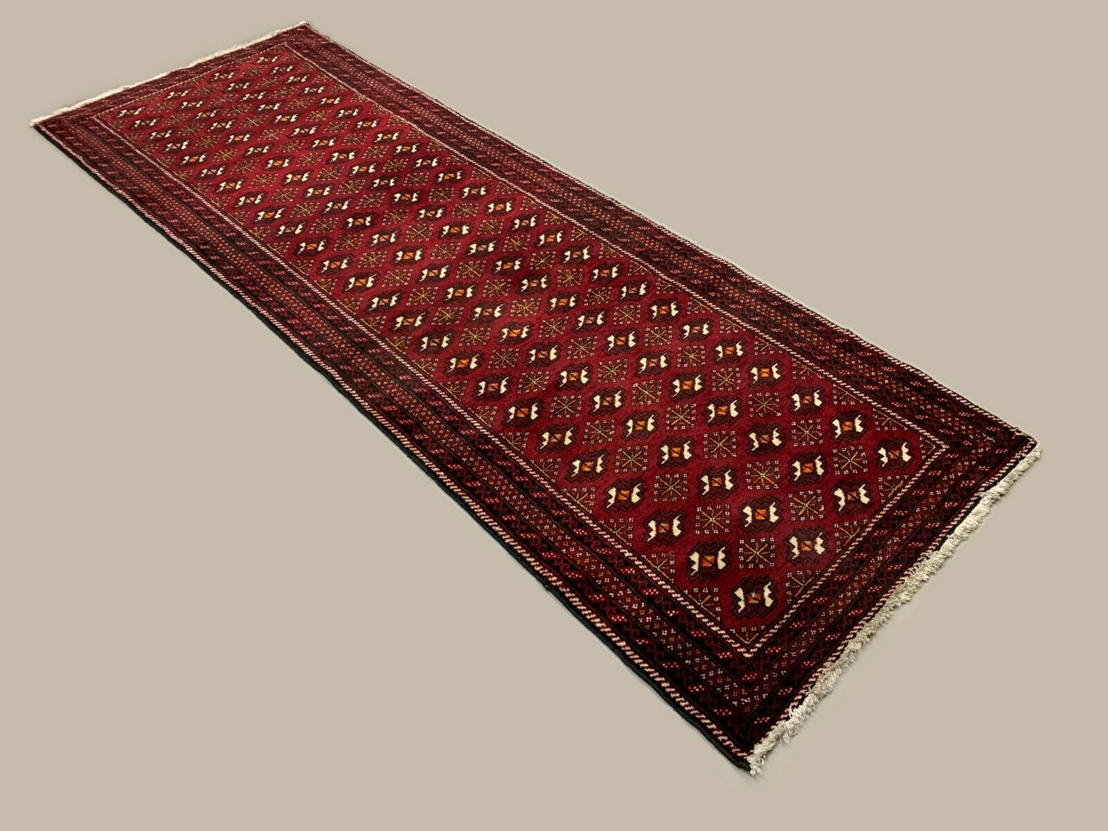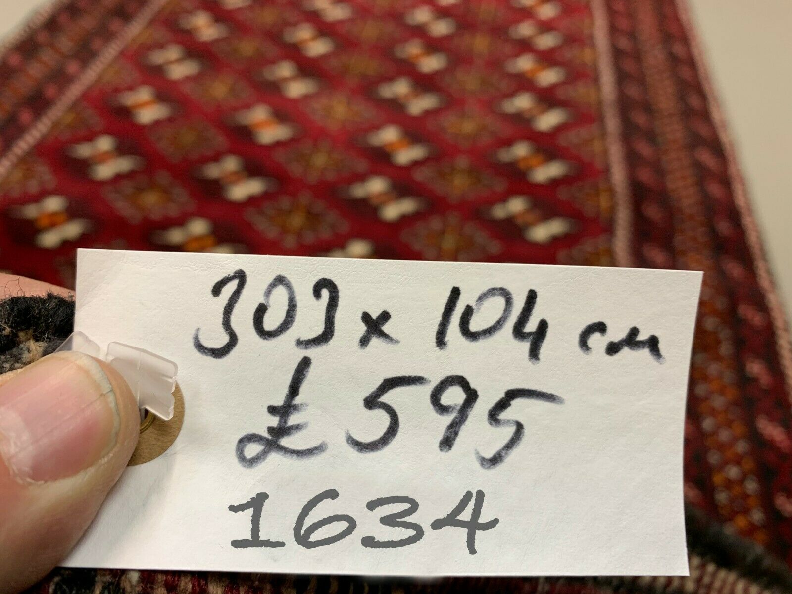 Vintage Turkoman Runner 303x104 cm Tribal Wool Rug, Red, Black